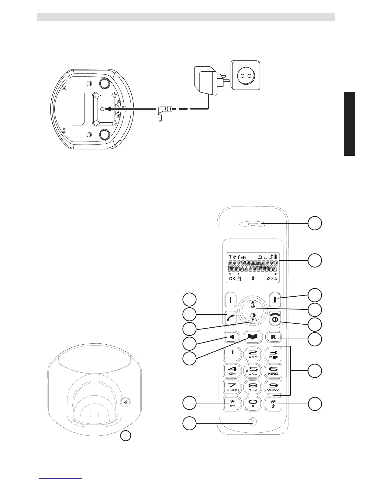Topcom BUTLER E600 TWIN - Installere Laderen (Kun for Butler E600 Twin;Triple;Quattro); Taster;Indikatorer