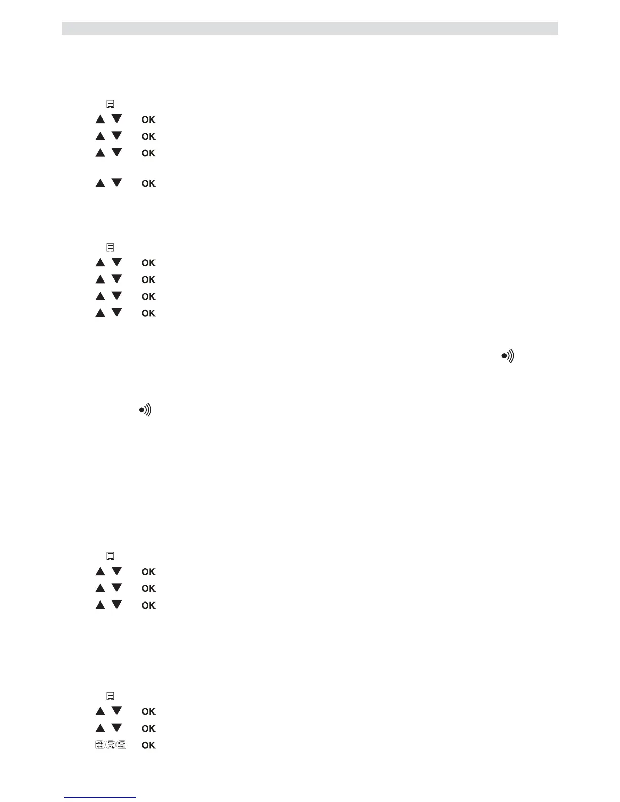 Podczas naciskania klawiszy, gdy jest niski poziom baterii lub, gdy suchawka jest poza zasigiem