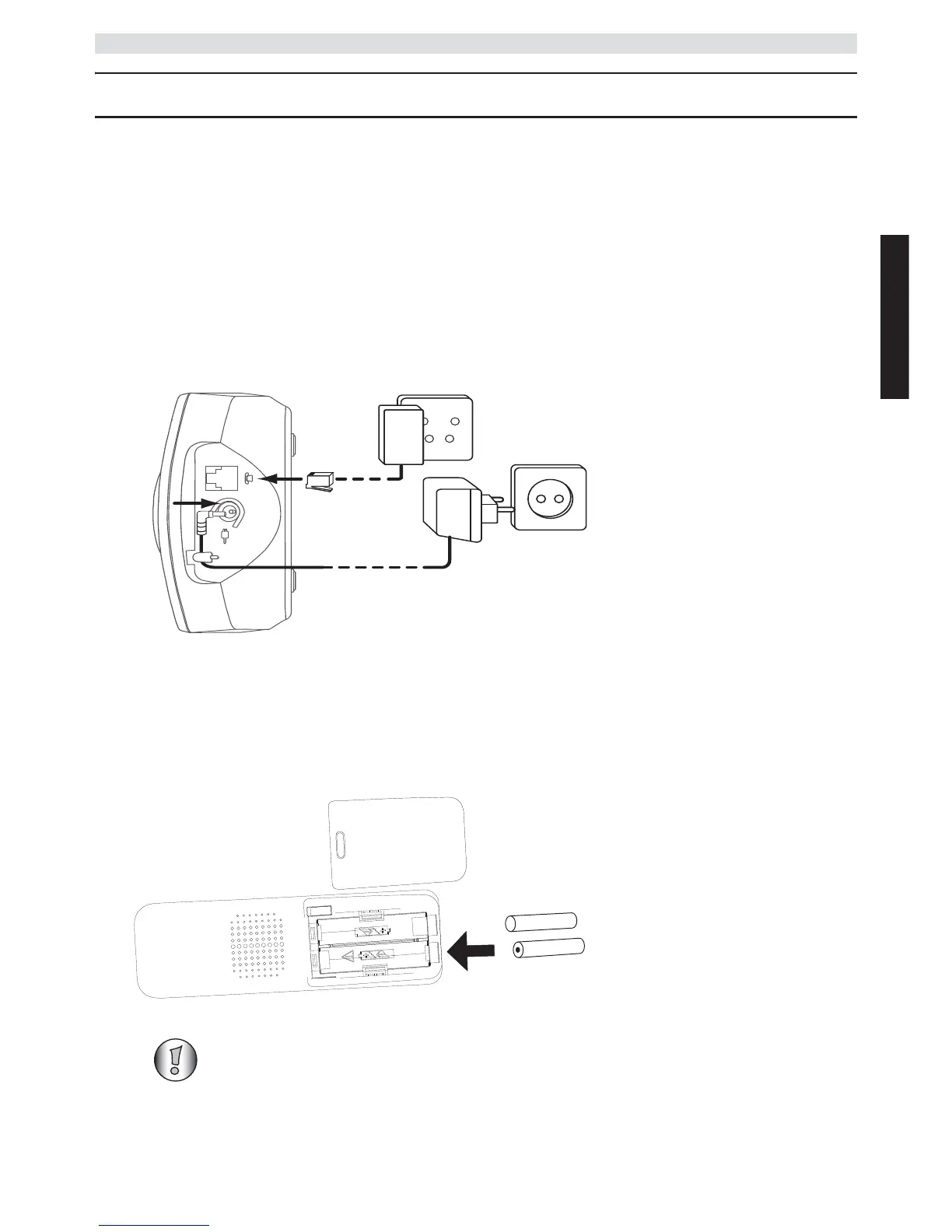 3 Steek de telefoon- en stroomkabel in de aansluitingen van het basisstation, zoals weergegeven
