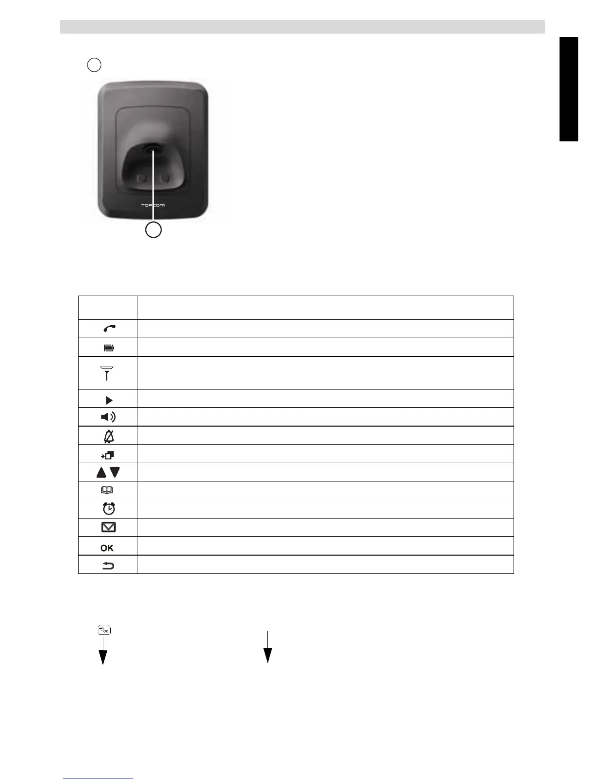 Text that appears on the display of the phone is shown in the right column