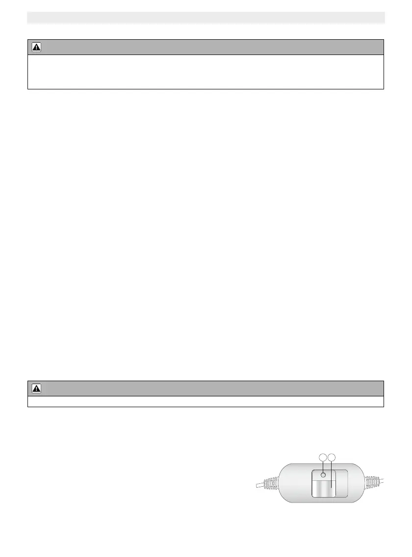 • Das Wärmeunterbett nicht einschalten, solange sie noch in der Verpackung ist. Dabei kann durch übermäßige