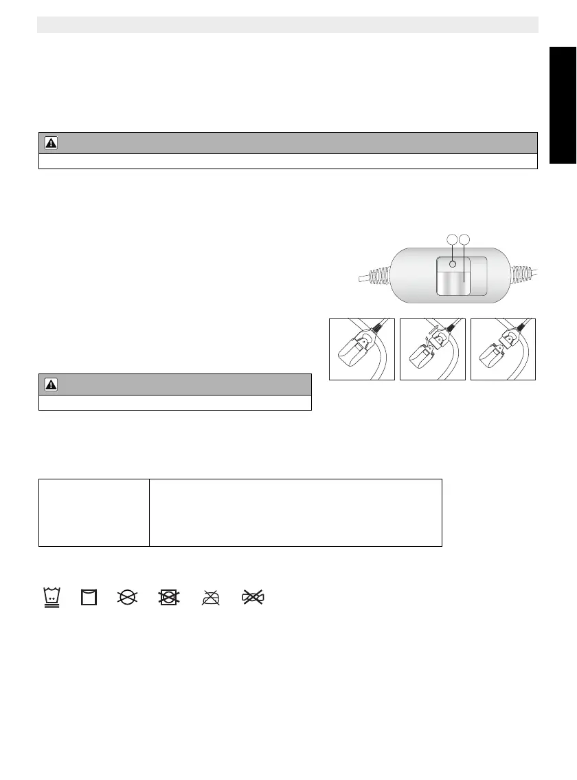 • Varmetæppet er udstyret med en kontrolenhed med 3 positioner: