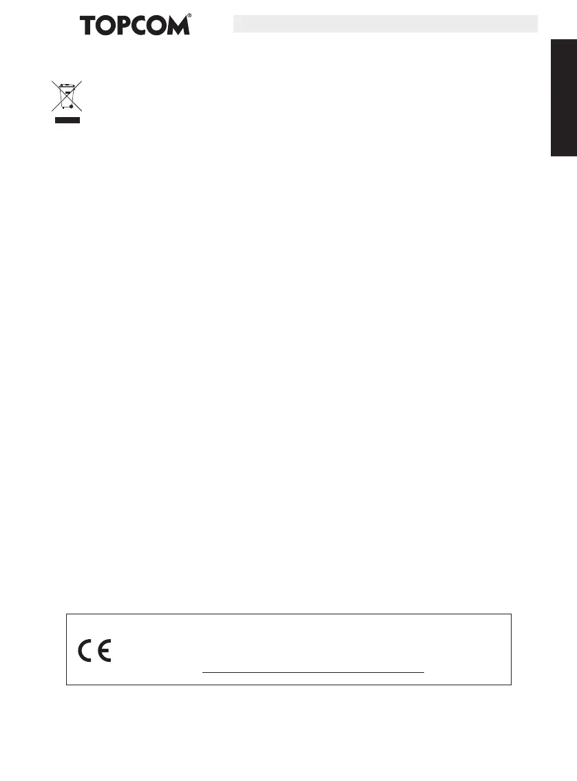 ikke-originale dele eller tilbehør, som ikke er anbefalet af Topcom, er ikke dækket af garantien.