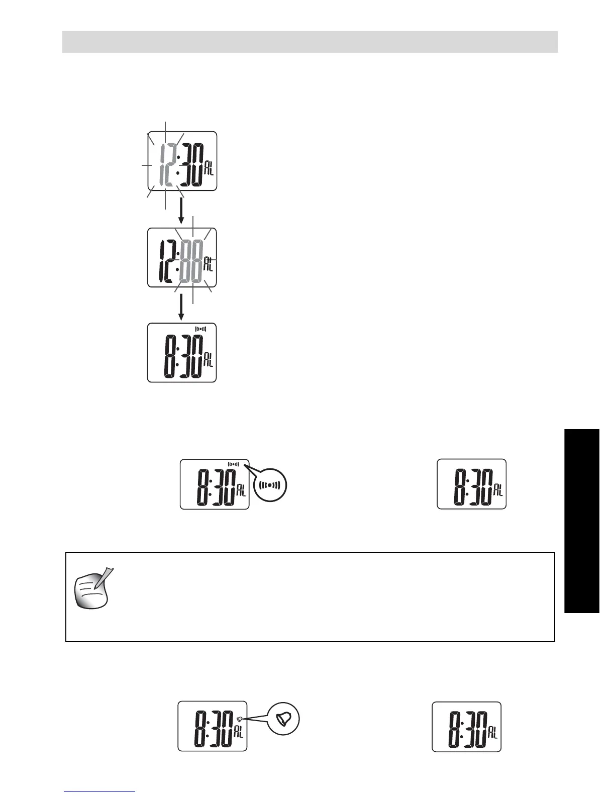 6 Setarea orei alarmei i a sunetului la fiecare or