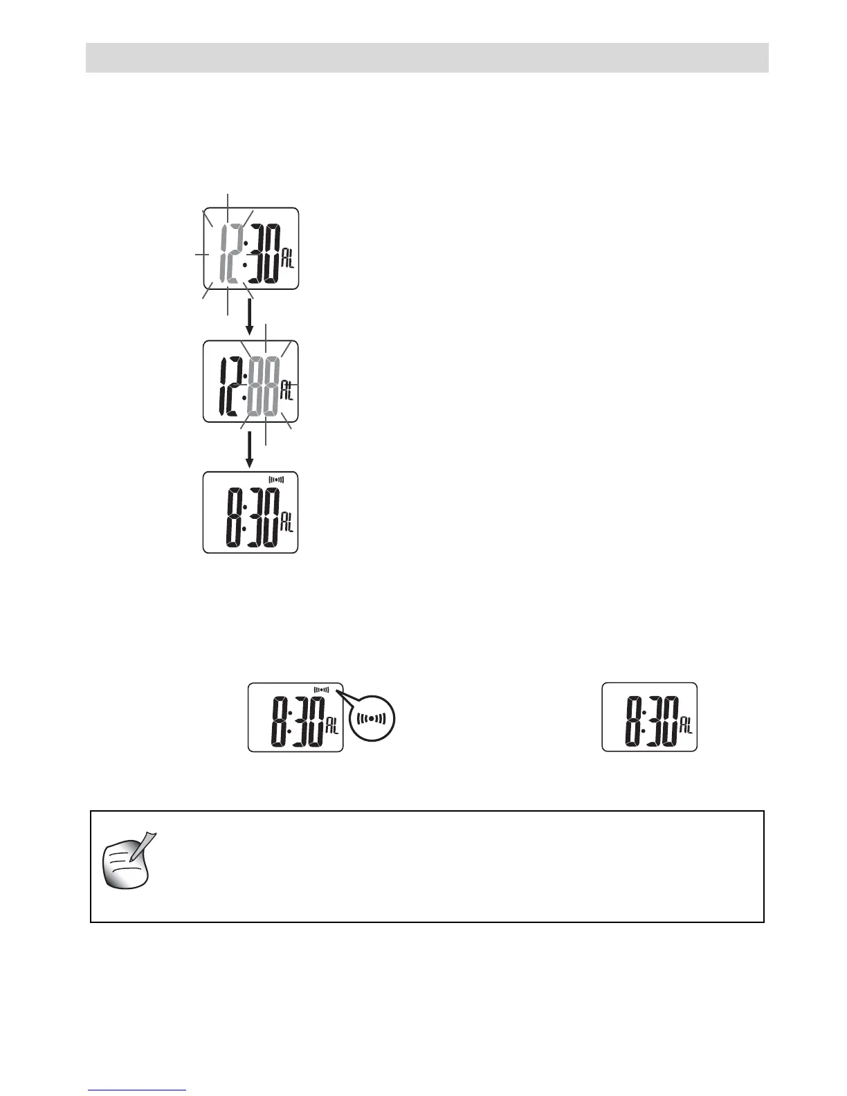 2. När larmet är aktiverat ljuder klockan vid larmtiden.