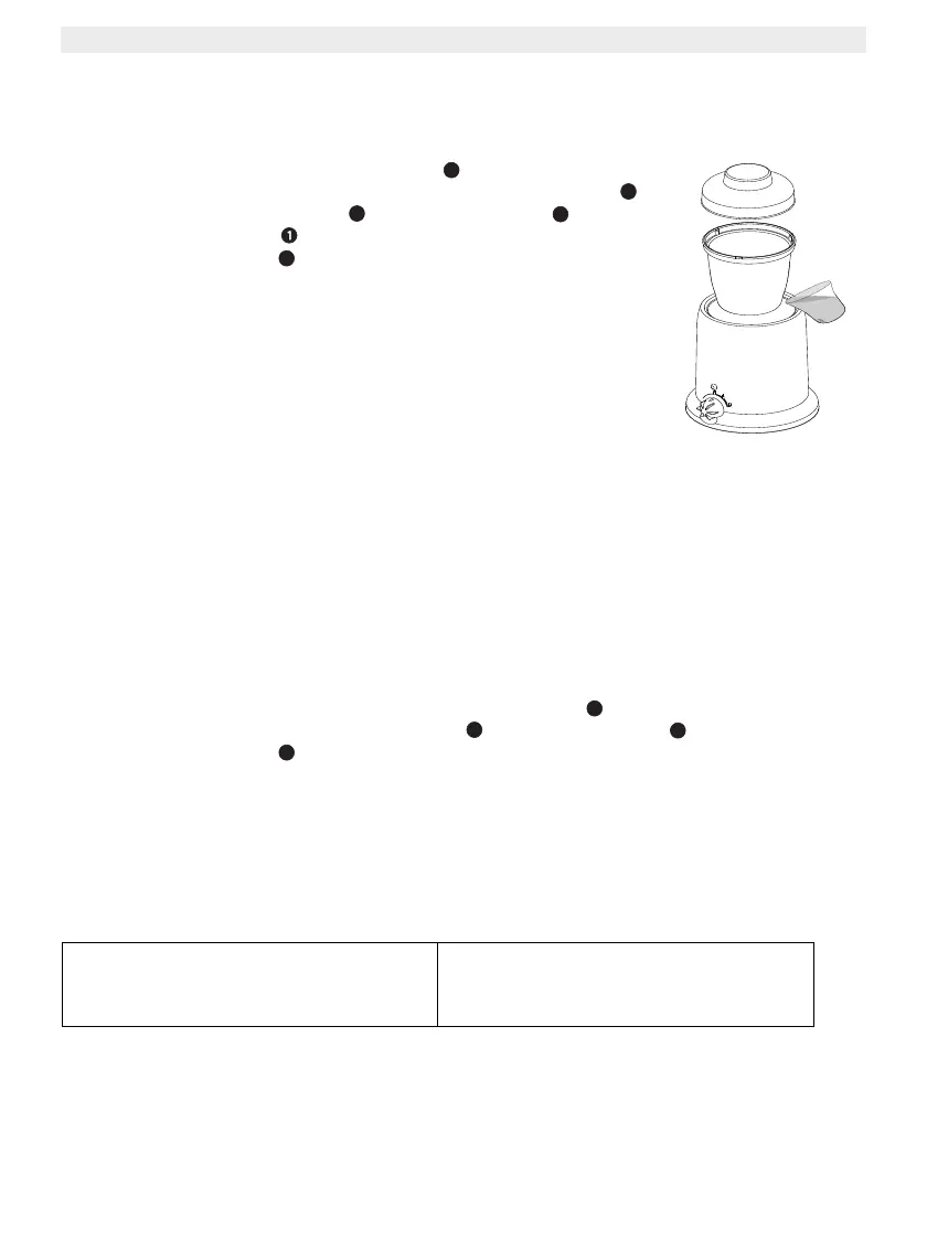 • Τοποθετήστε την τροφή του μωρού (μέγ.150g) στο δοχείο φαγητού .