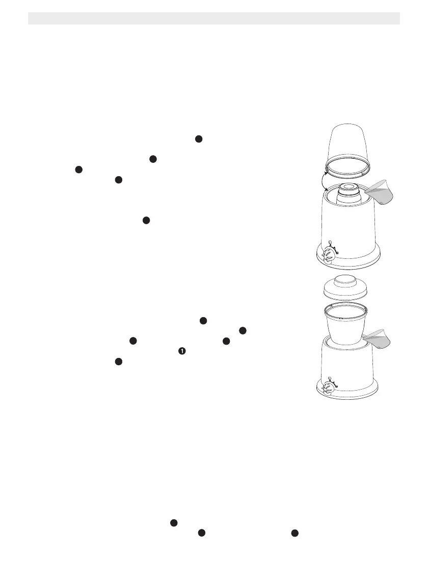 • Vložte detskú fľašu alebo nádobu na jedlo do ohrievacej nádržky .