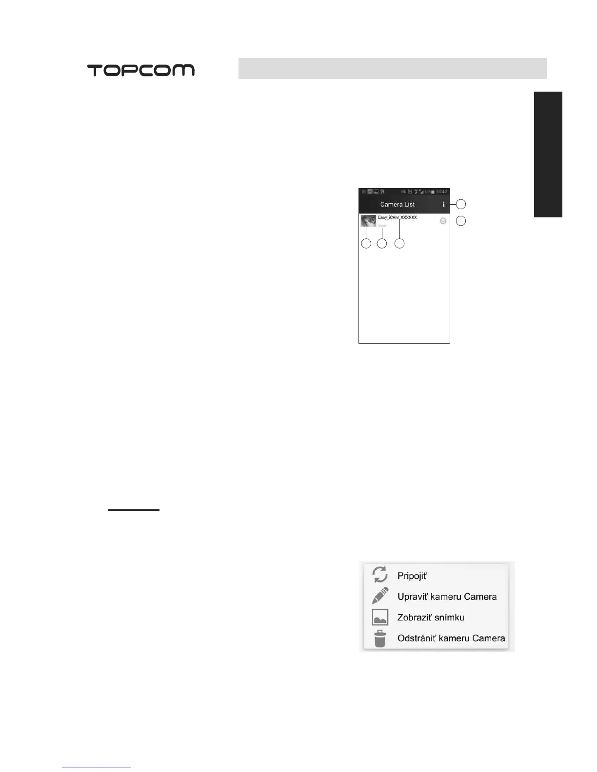3uknite na tento riadok, ak chcete odstráni/ kameru.