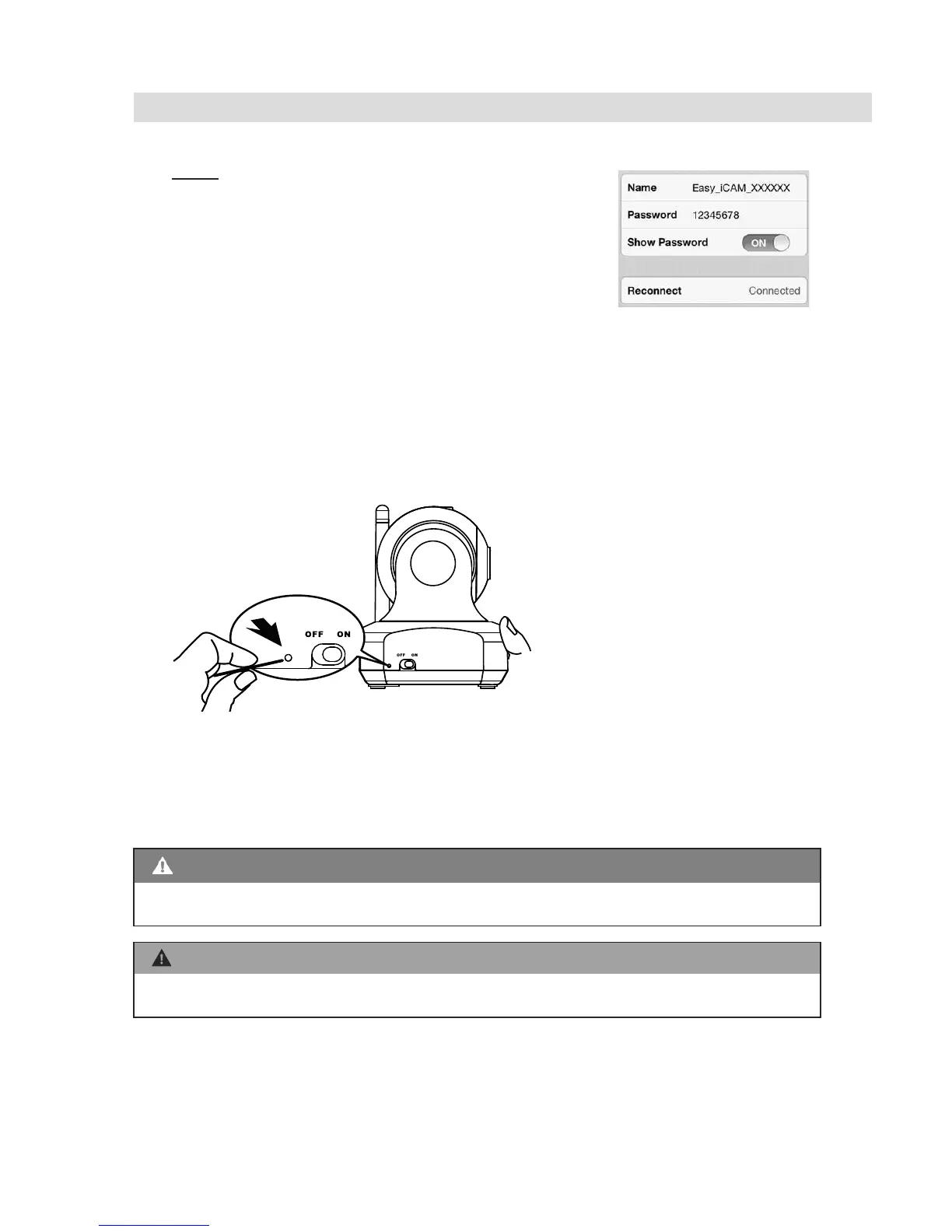Ke- je kamera zapnutá minimálne 1 minútu, stla*te tla*idlo resetovania (pomocou malého