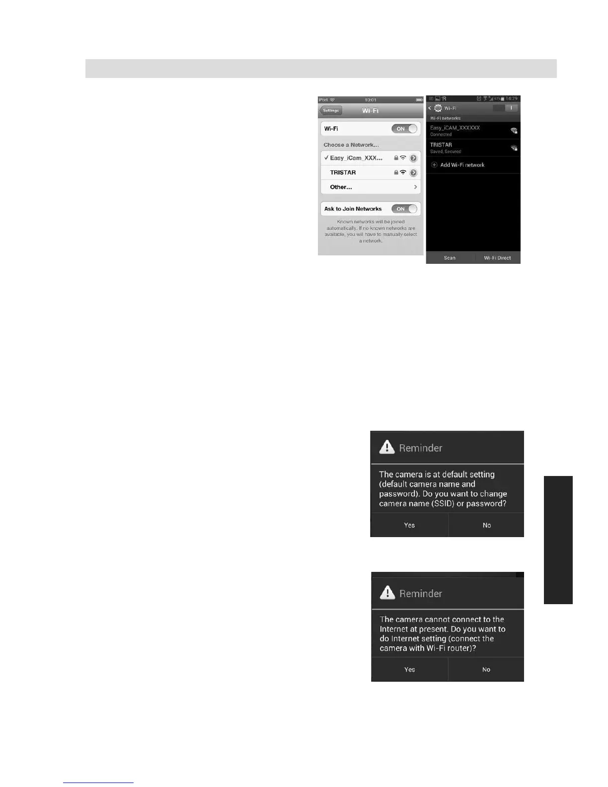 • Wenn Sie „Ja" wählen, können Sie den WLAN-Kameranamen bzw. das Kennwort ändern.