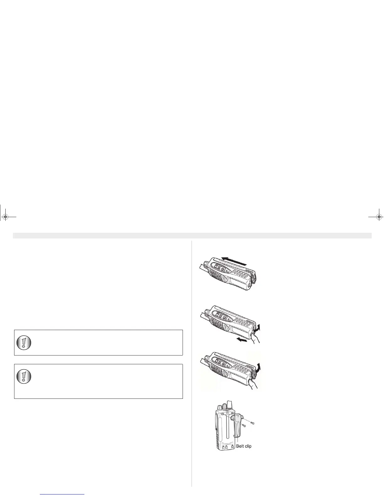 Aseta akku PMR-laitteen rungon takaosan suuntaisesti.