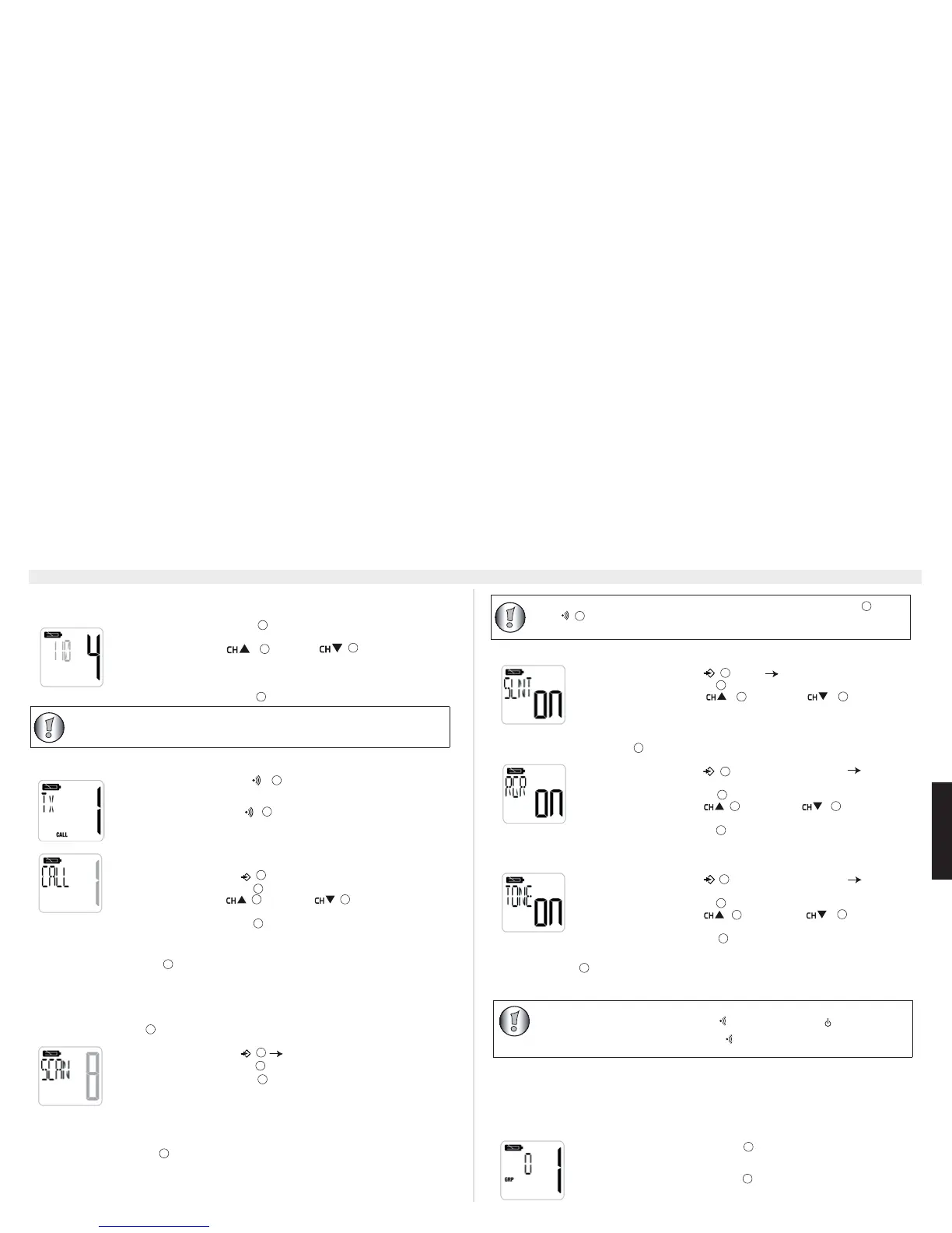 • Appuyez sur la touche six fois (sept fois en mode groupe) TONE