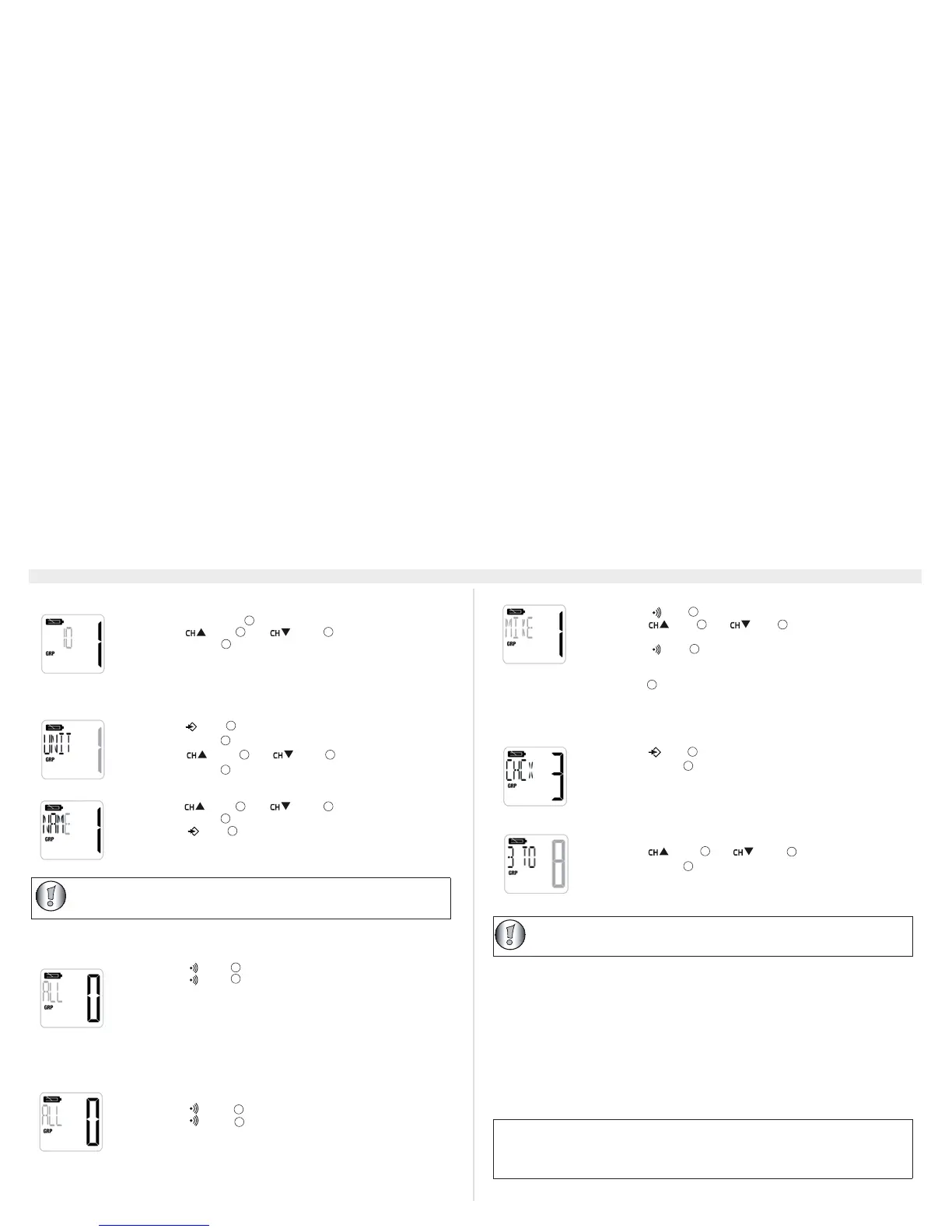 • Trykk SUB/GRP-tasten den valgte gruppekoden blinker
