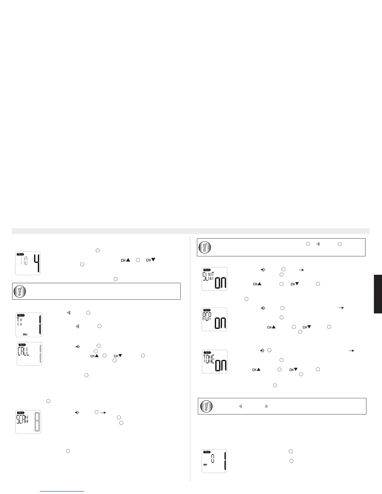 – Näytön taustavalo, SLNT ja kanavan numero vilkkuvat 15 sekunnin ajan