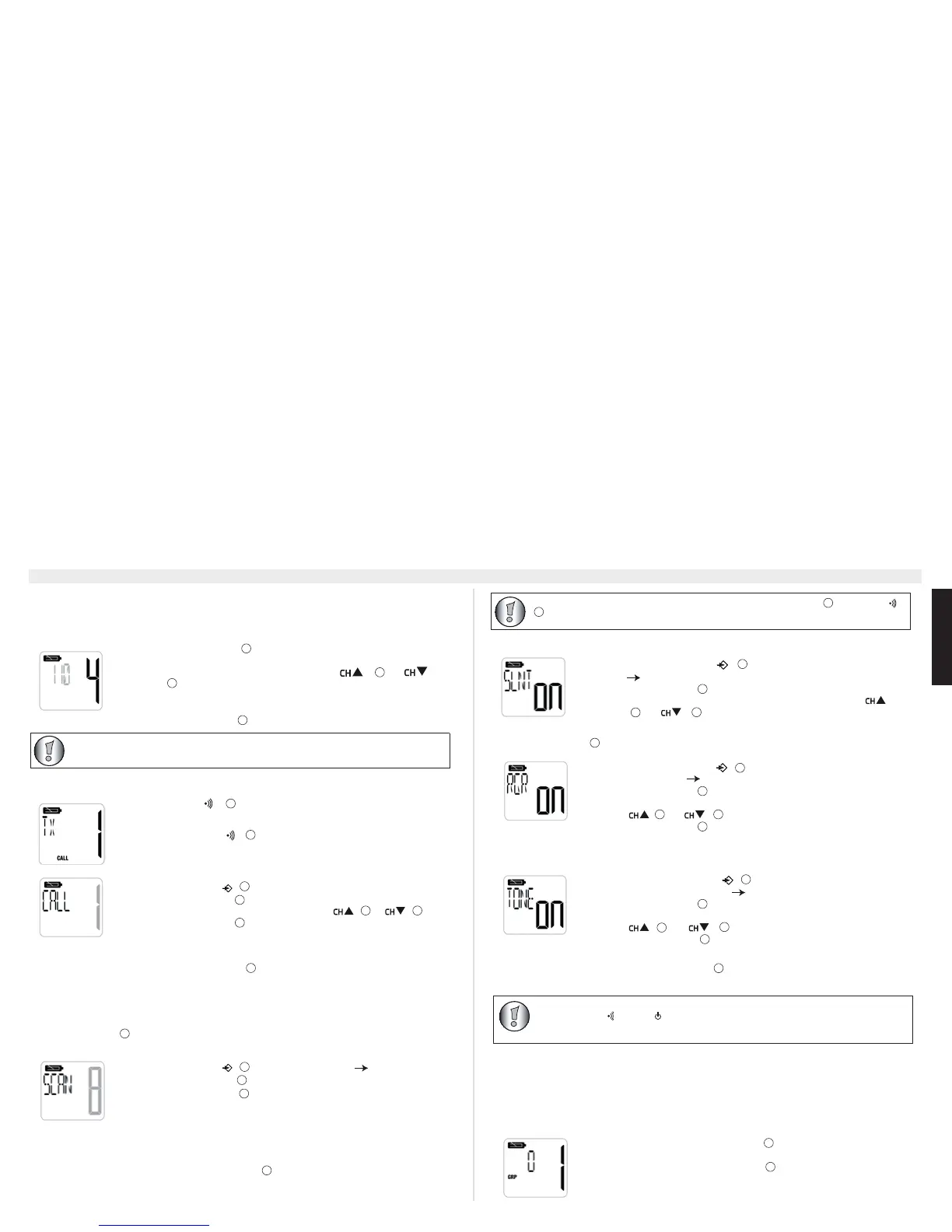 – Podwietlenie wywietlacza, symbol SLNT i numer kanau migaj przez 15 sekund.