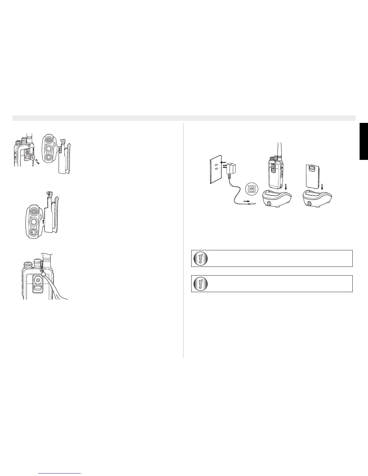 Insérez le talkie-walkie (muni de sa batterie) ou la batterie seule dans le chargeur.