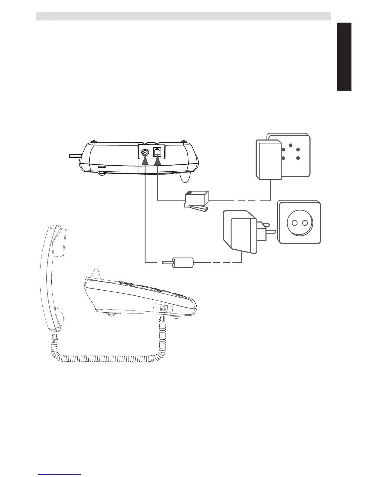 3 Collegare il cavo telefonico e il cavo elettrico come illustrato