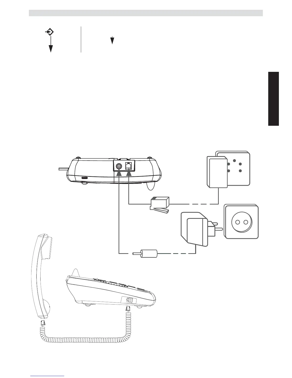 3 Ligue o cabo de telefone e o cabo de corrente conforme
