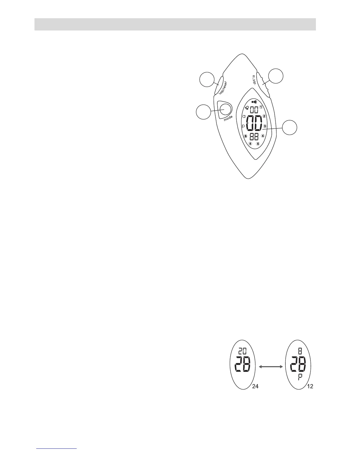 • Zum Anzeigen der Rundenzeit oder zum Zurücksetzen der Stoppuhr