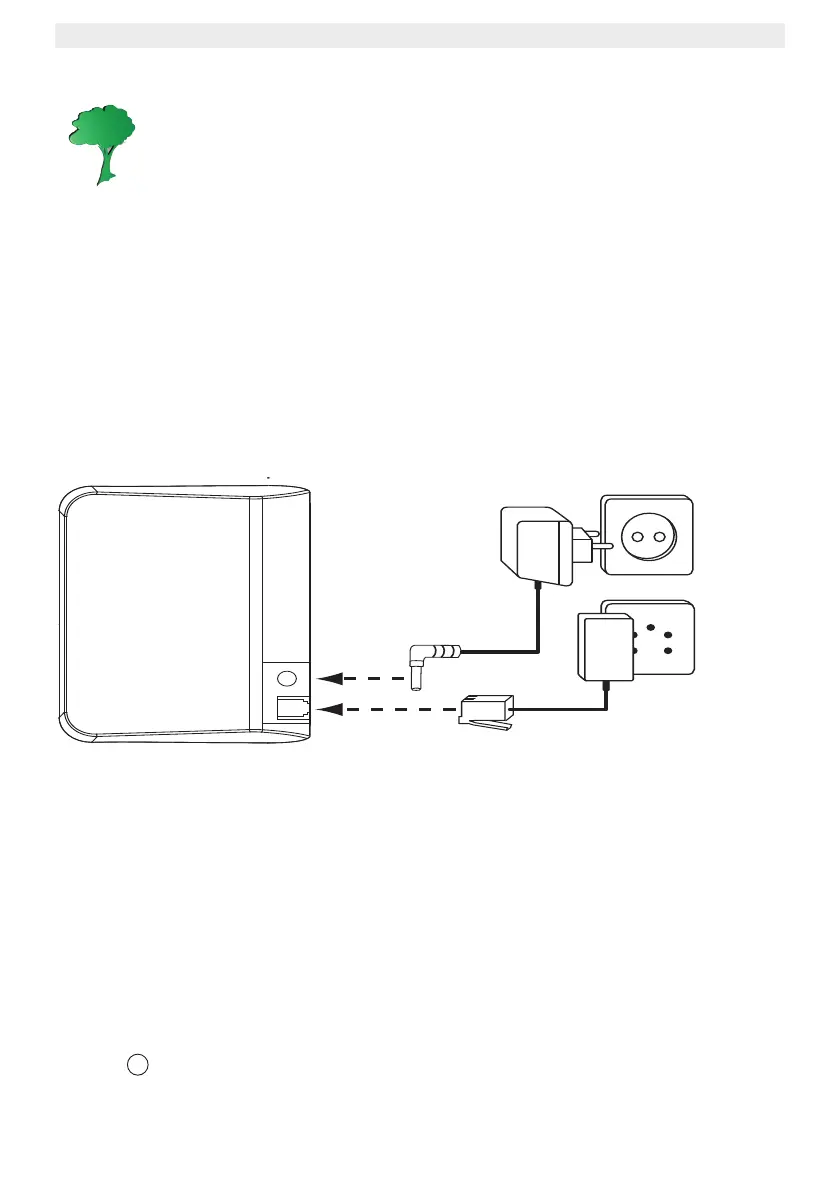 • Plug one end of the adaptor into the 230V outlet and the other end into the adapter jack