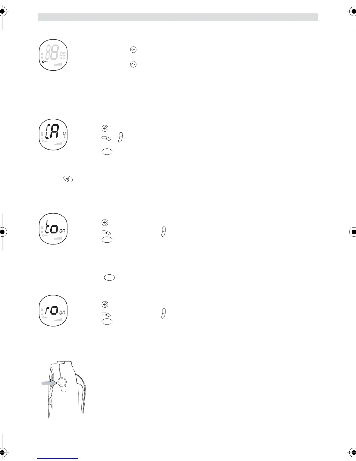 • Presionar para activar (ON) o para desactivar el tono de tecla (OF).