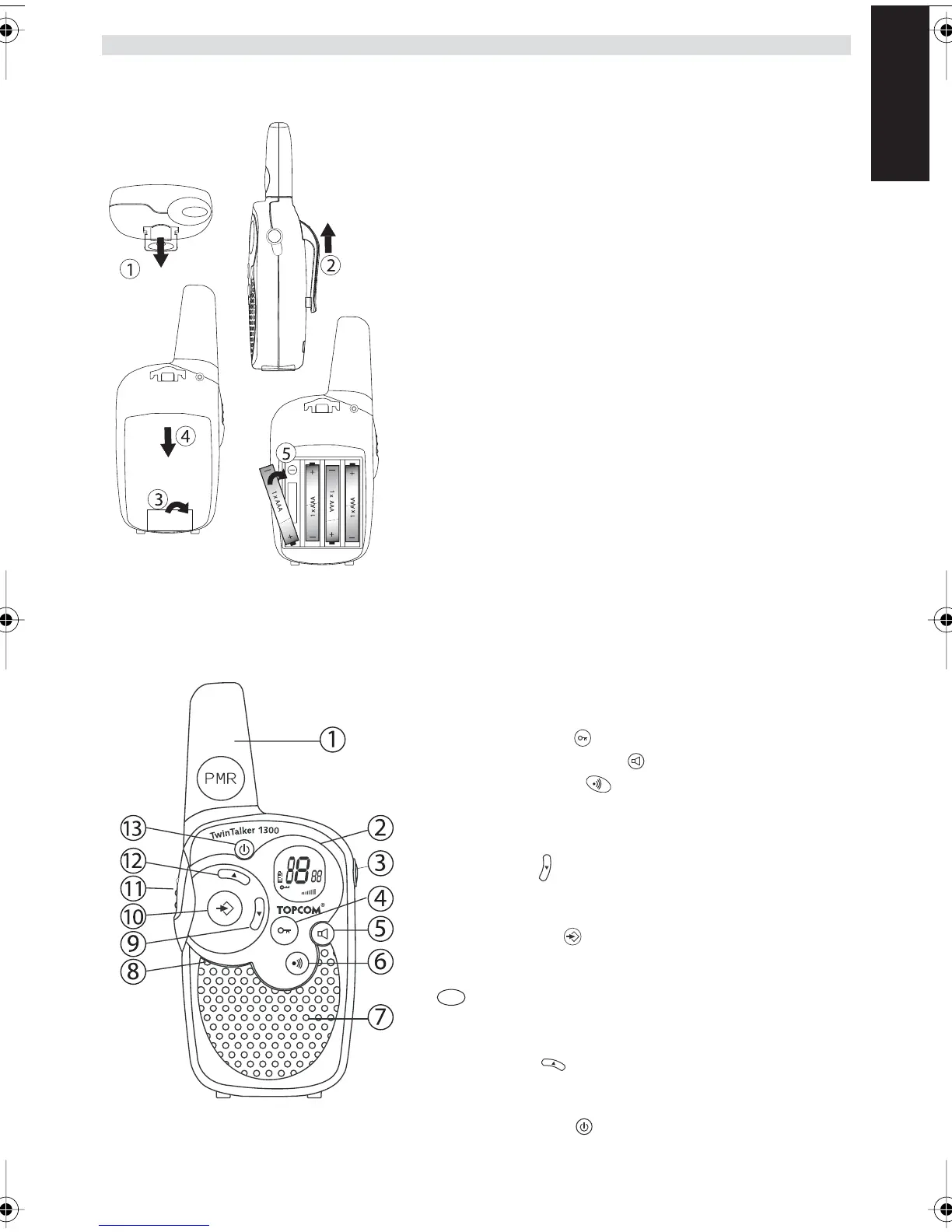 4.Ricollocare il coperchio del vano batterie e la clip da cintura (§