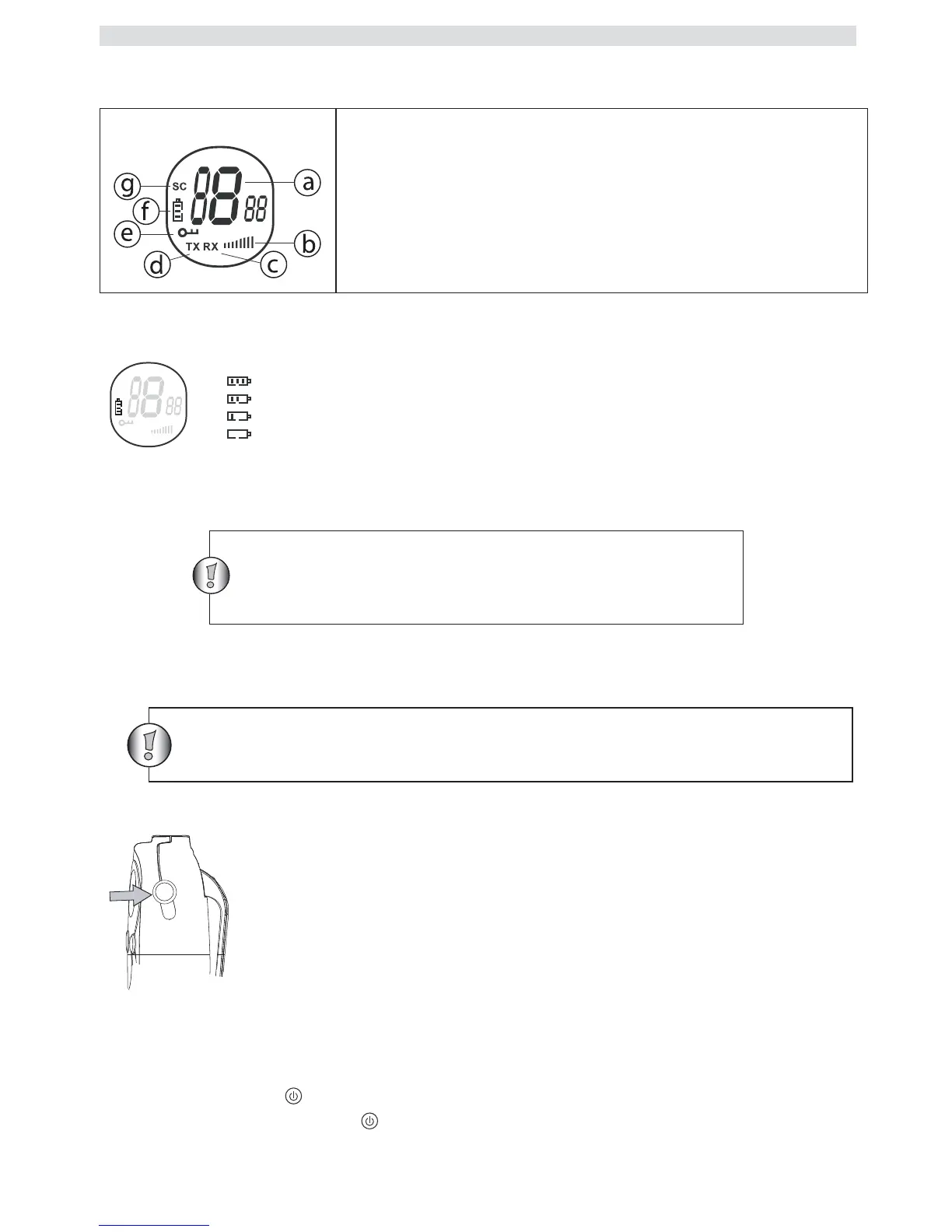 f. Indikátor stavu batérie