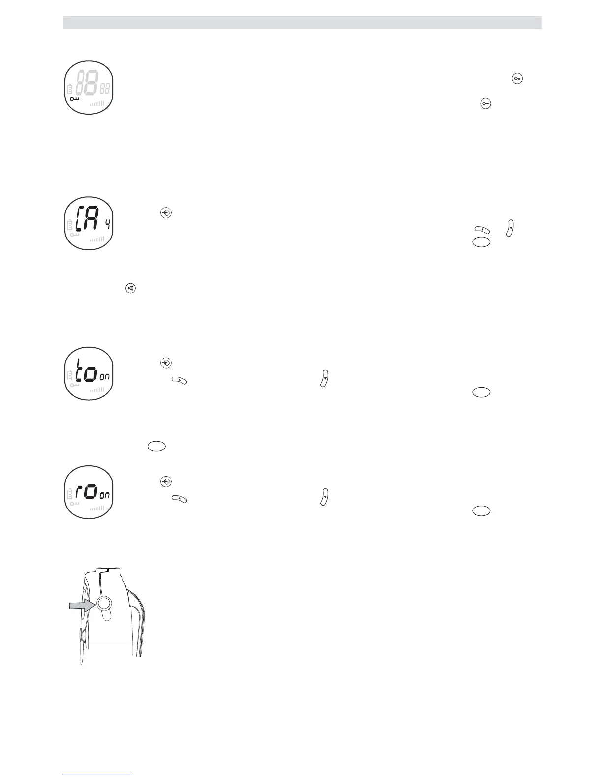 • Tlaidlom aktivujete (ON) alebo tlaidlom zablokujete tóny tlaidiel (OF).