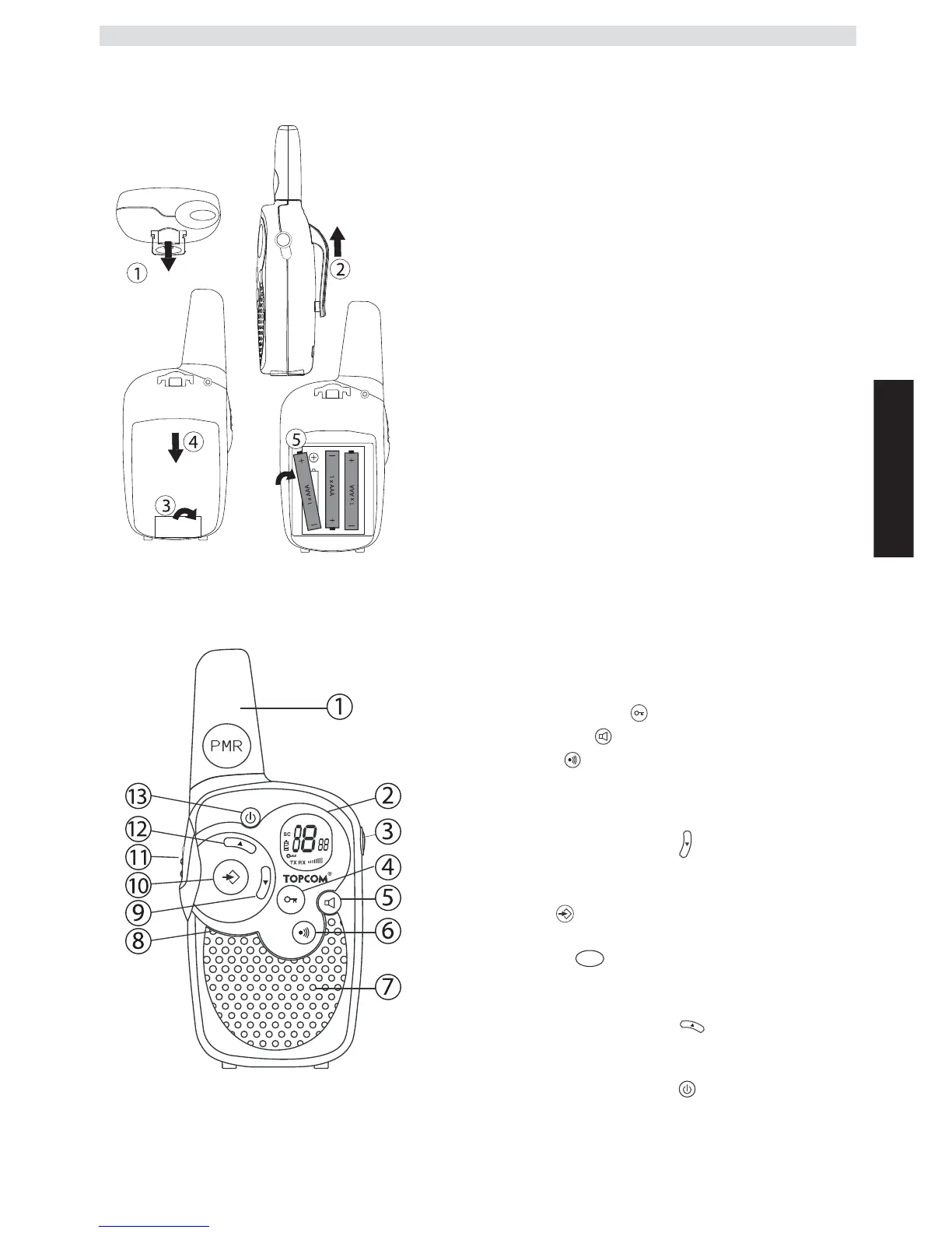 2.Poussez l'onglet (3) sur le couvercle du compartiment à piles