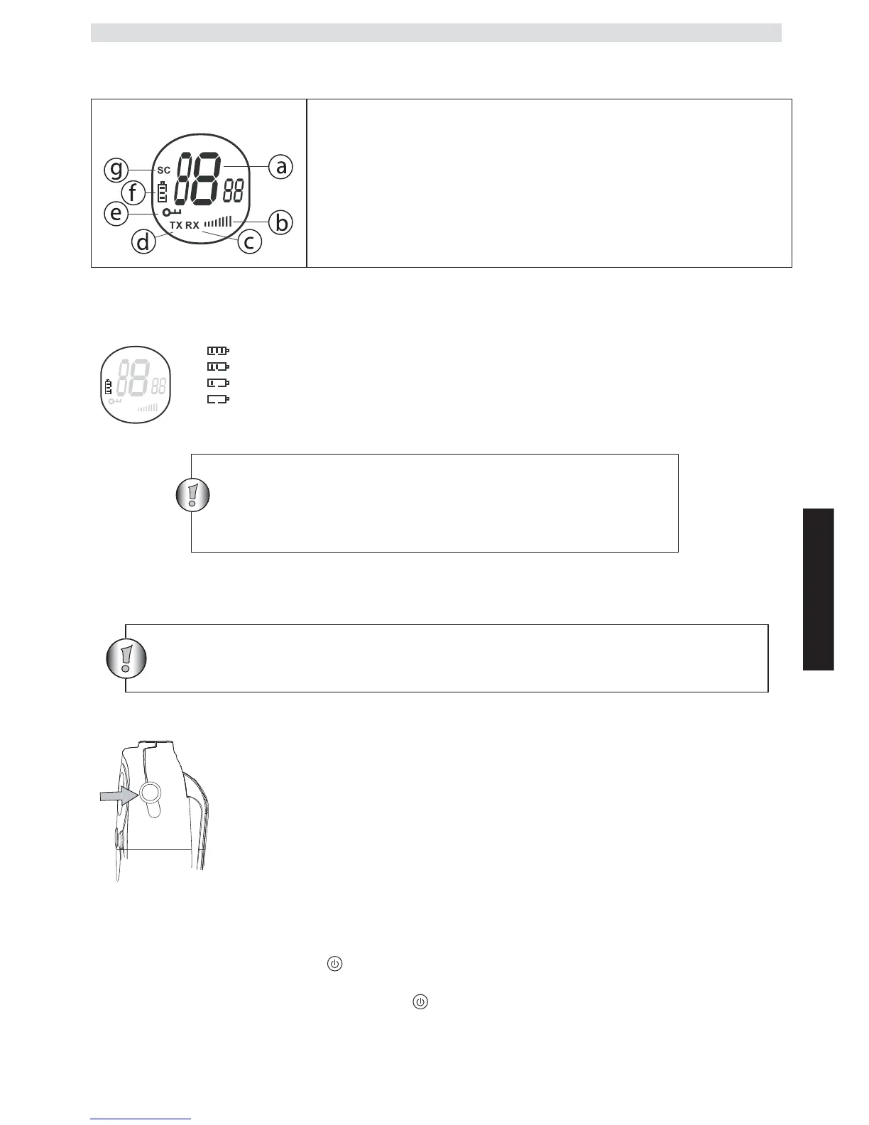 f. Indicatore livello di carica della batteria