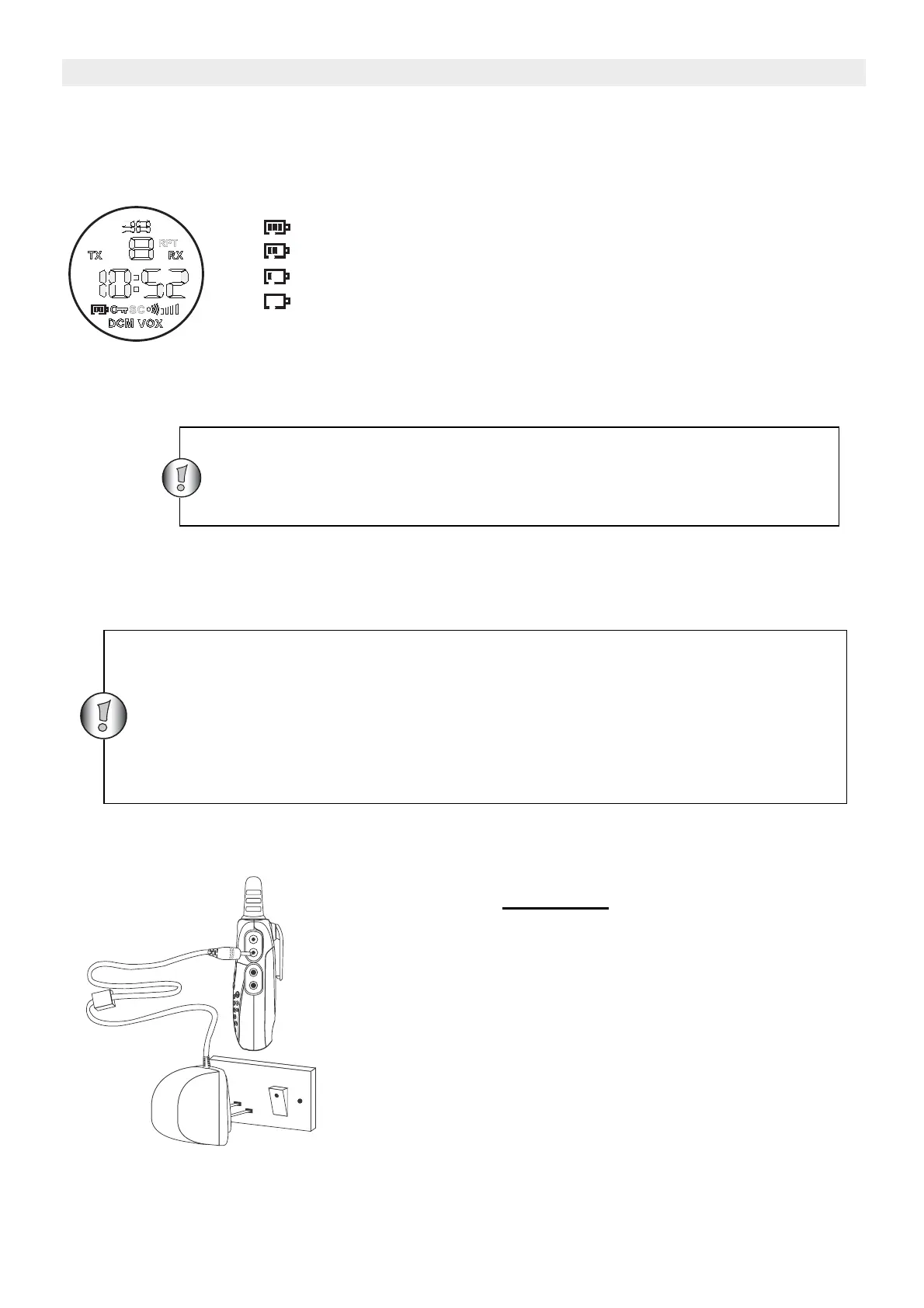 BATTERILADENIVÅET indikeres med hvor mange firkanter det vises i BATTERI-ikonet på