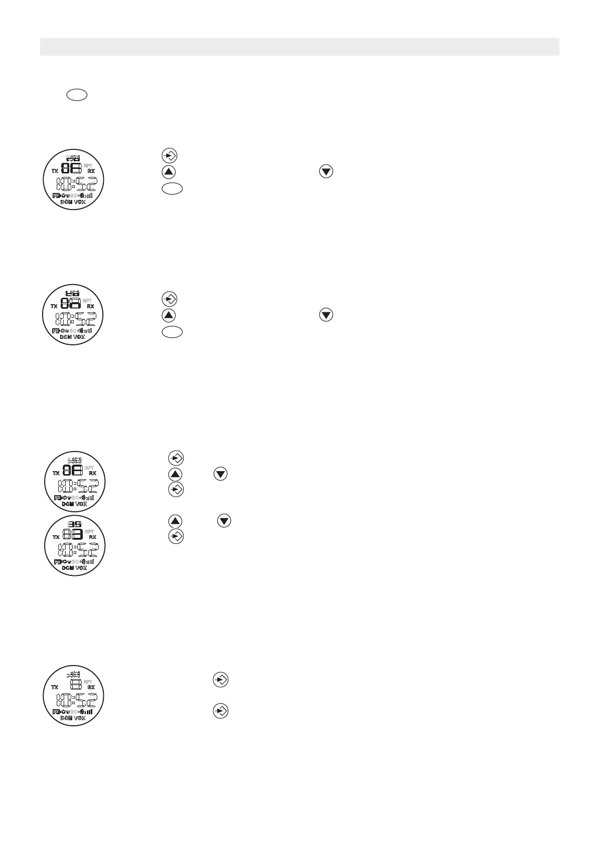 • Trykk for å bekrefte kanalvalget og gå til VALG AV CTCSS