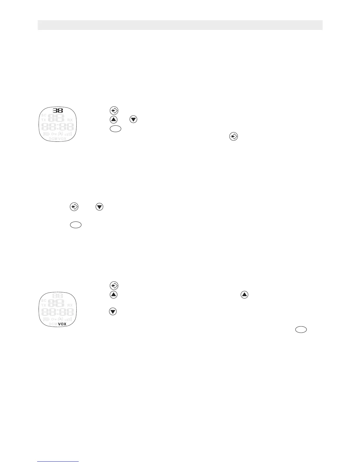 • Press to turn the VOX feature ON and press again to select the