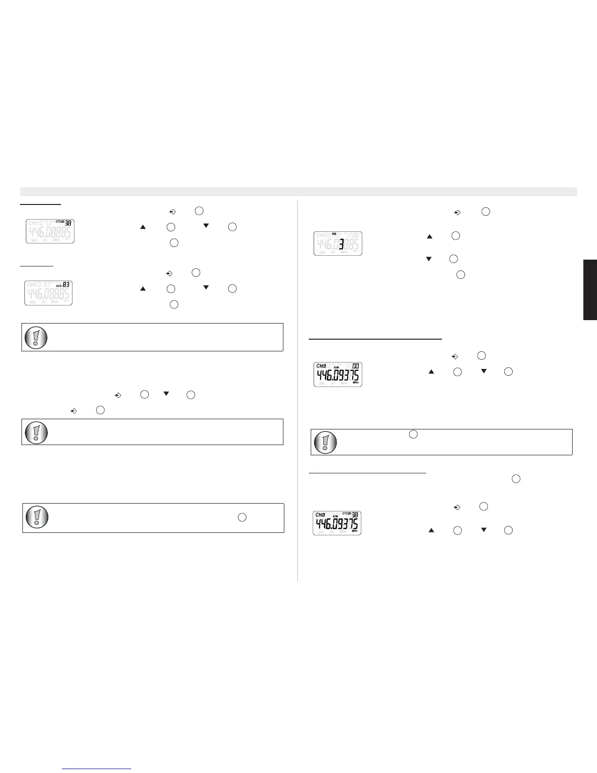 actieve kanaal te selecteren. Nu hebt u de mogelijkheid om de CTCSS-/DCS-code te zoeken die