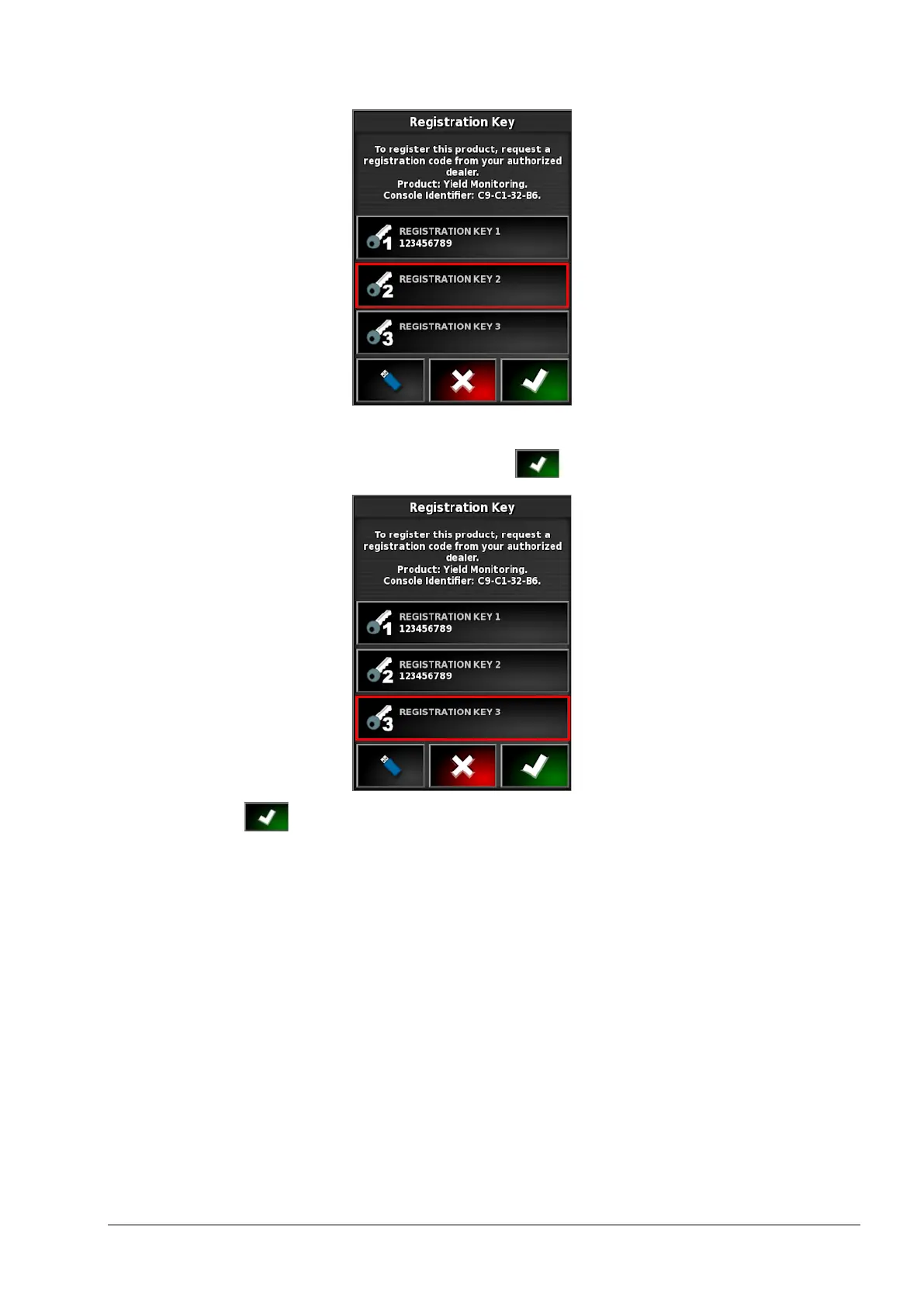 6. Select REGISTRATION KEY 3, enter the third set of numbers