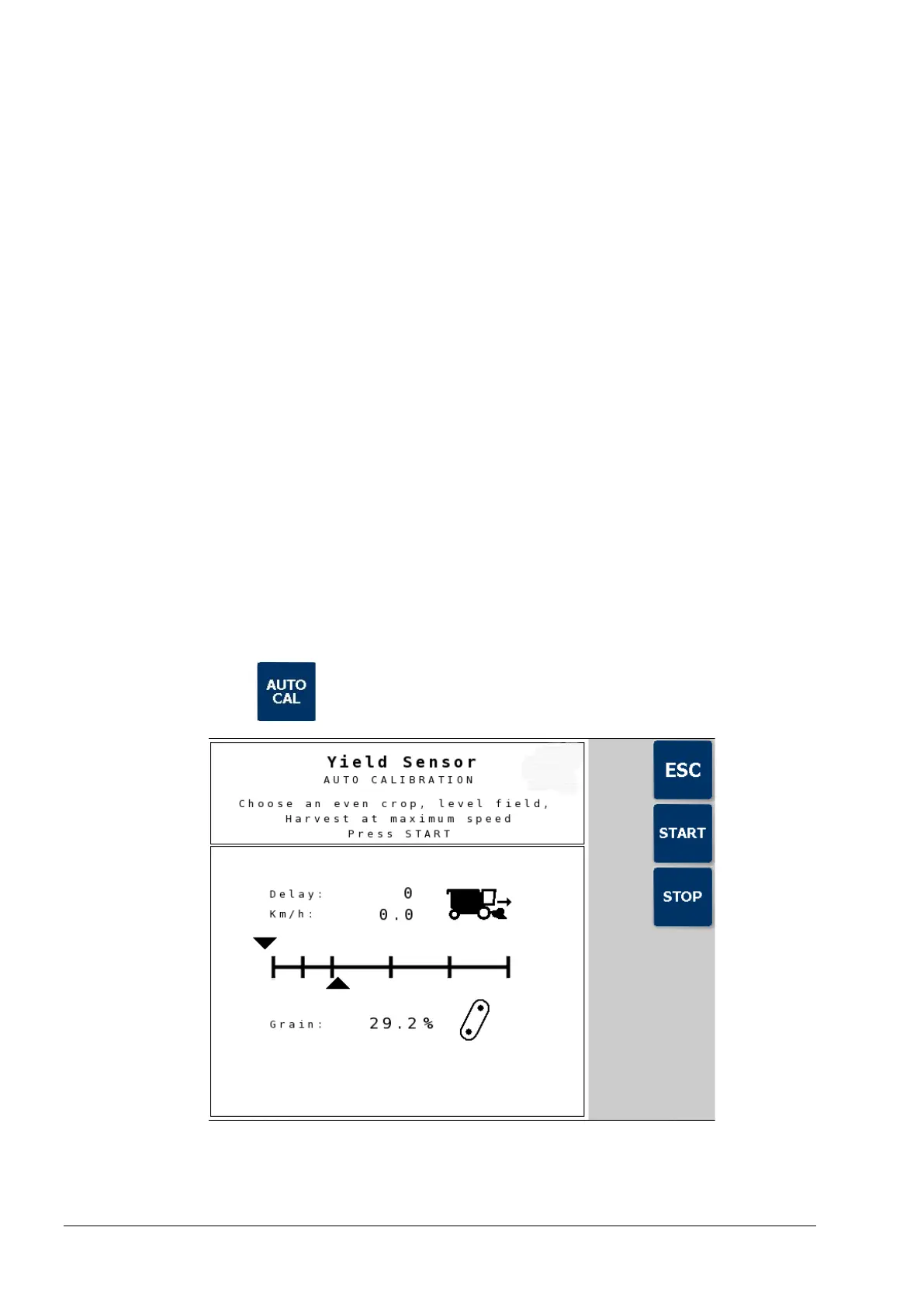 The following AUTOCAL procedure calibrates the yield sensor(s) in