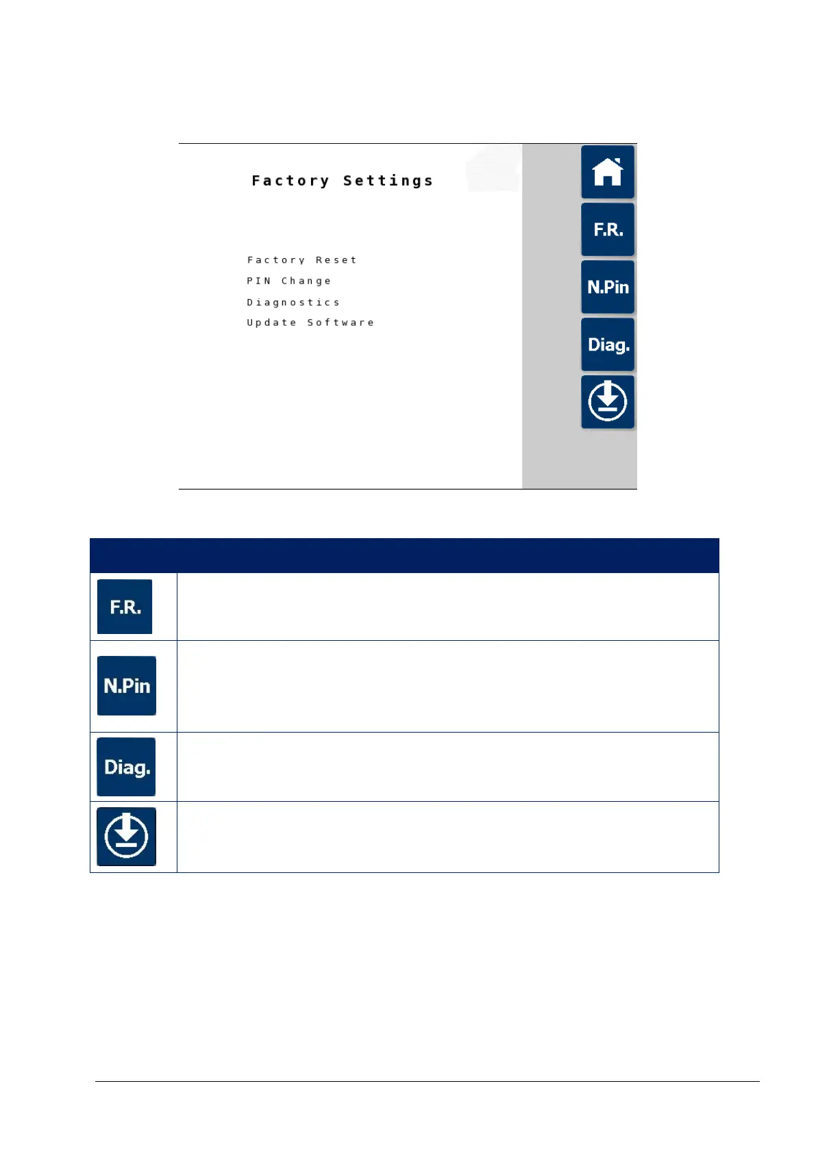 7.8. Factory setup screen