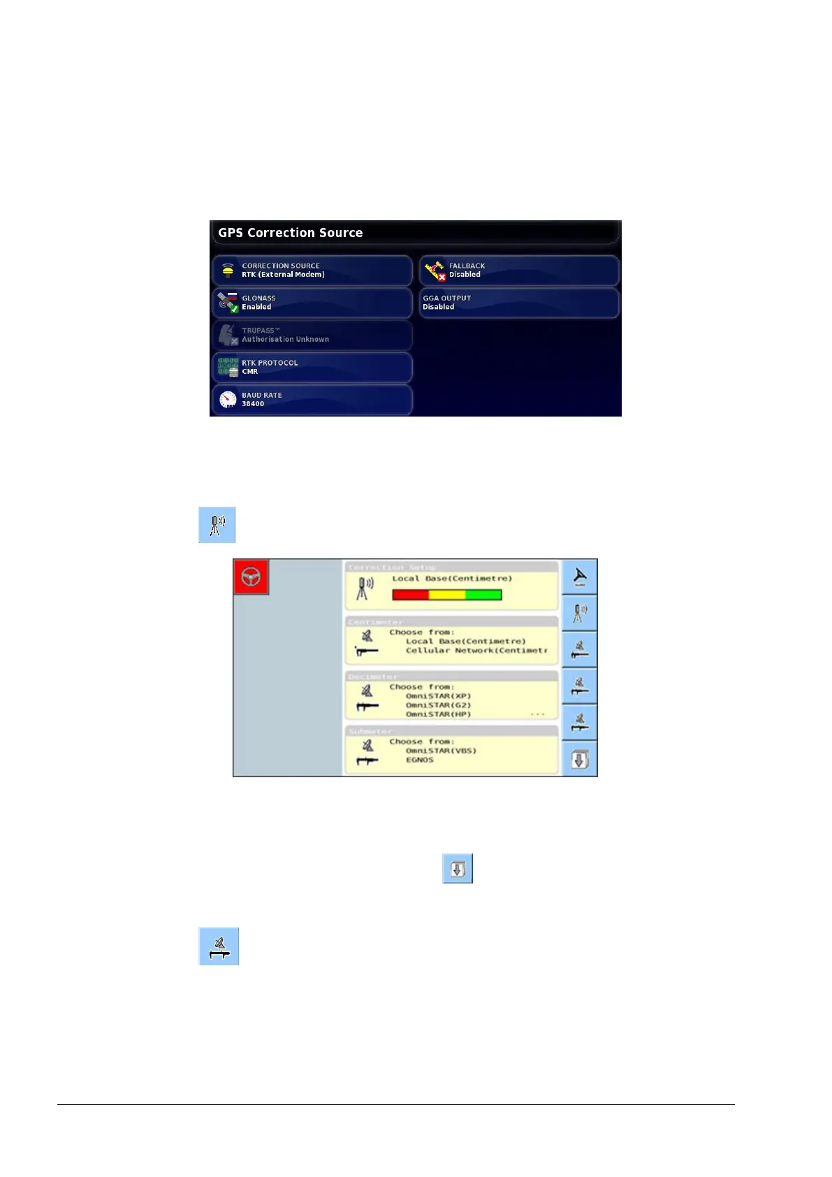 2. Select the correction source that will be used for operation in the