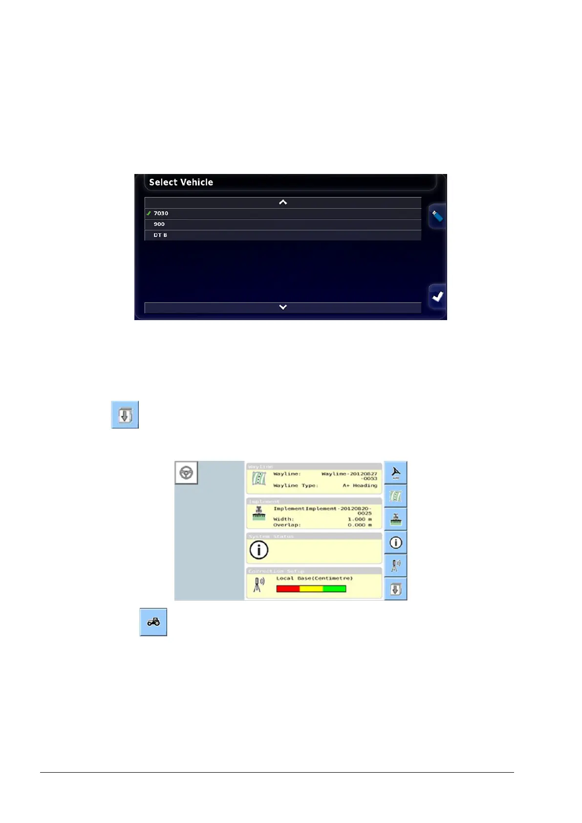 1. Select Vehicle / Select. The current vehicle profile is displayed