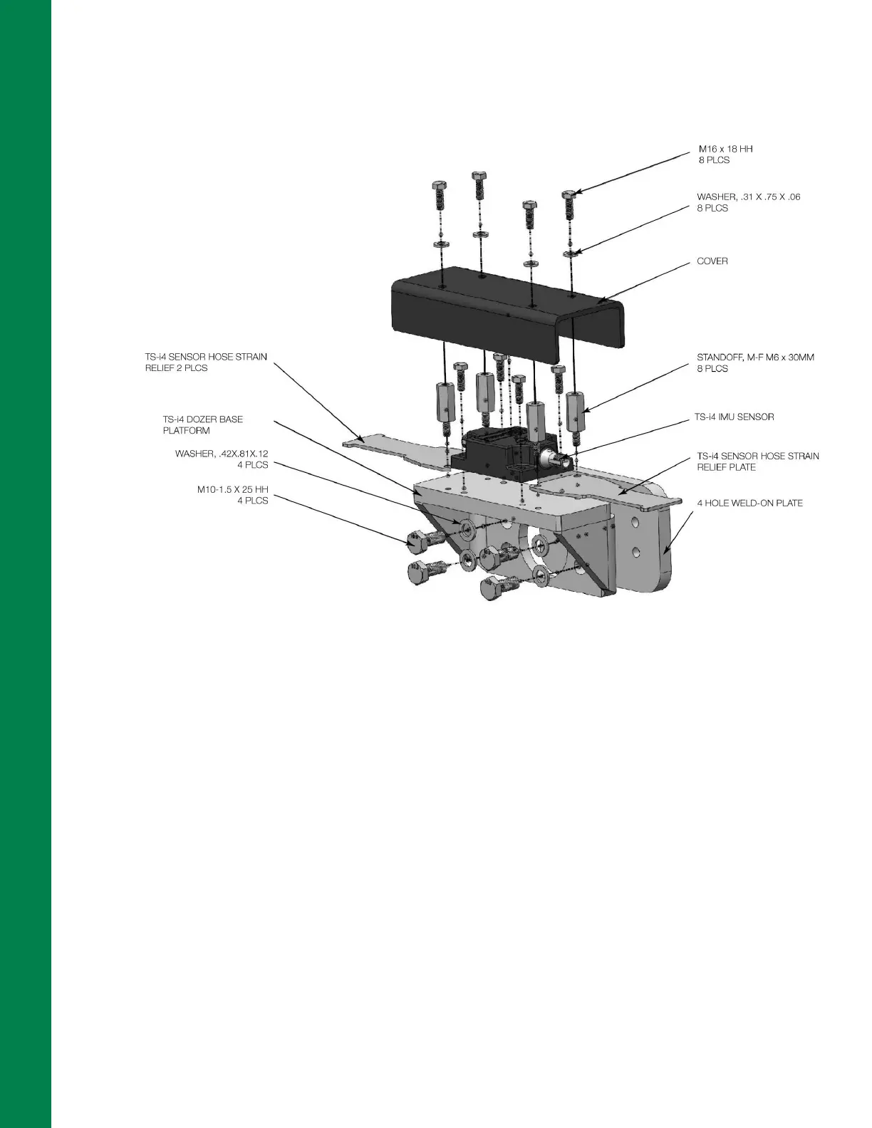 14. Use two standoffs to secure each of the strain relief plates to the TS-i4 Dozer Base Platform