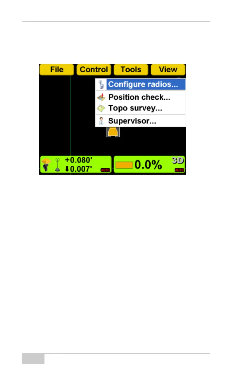 1. Press Topcon LogoToolsConfigure radios.