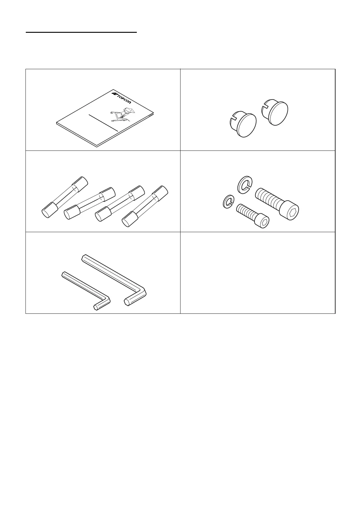 If any of the standard accessories are missing, contact your local TOPCON office.