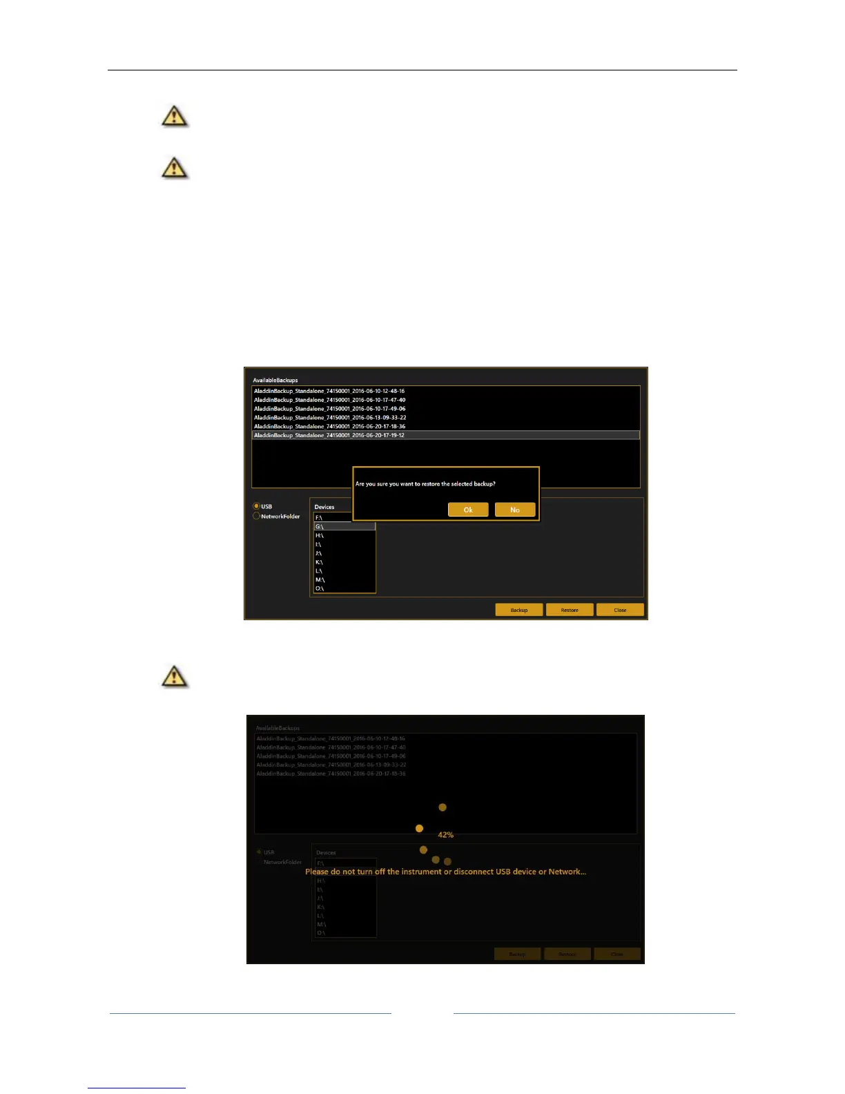 1. Select the source of the backup image to restore (USB or Network Folder). Navigate the list of
