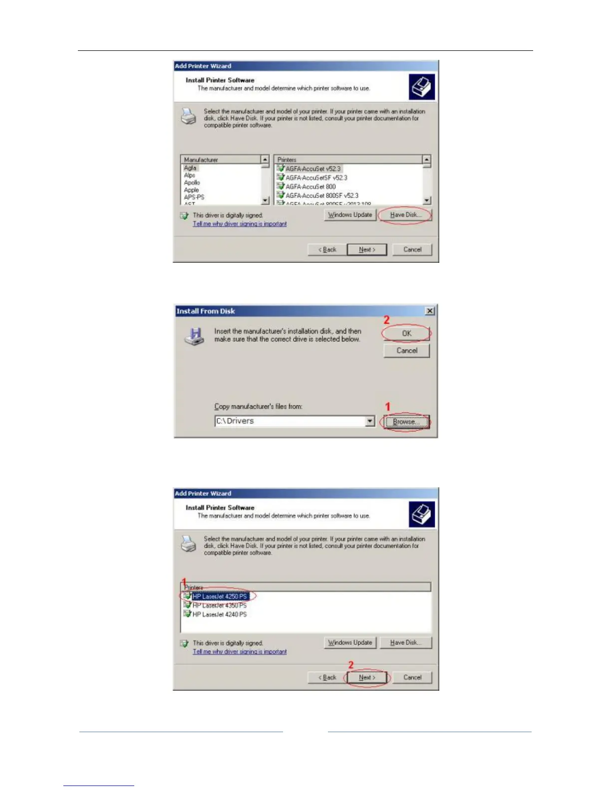Click the Browse button and select the folder where you extracted the drivers (.inf file) for this printer. Once