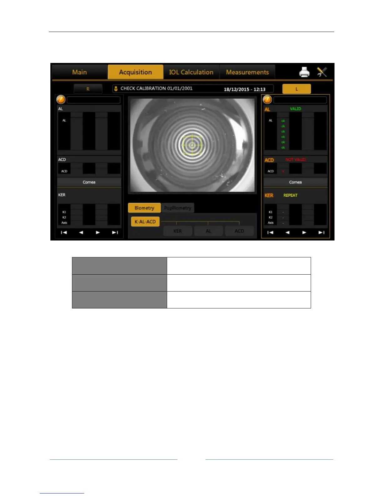 If the calibration check is still not valid, do not take any patient measurement and contact Topcon Technical