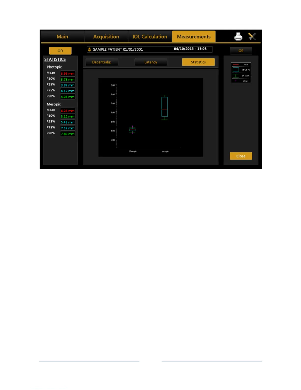 The graph is displayed only if images of the pupil have been acquired in photopic or mesopic conditions.