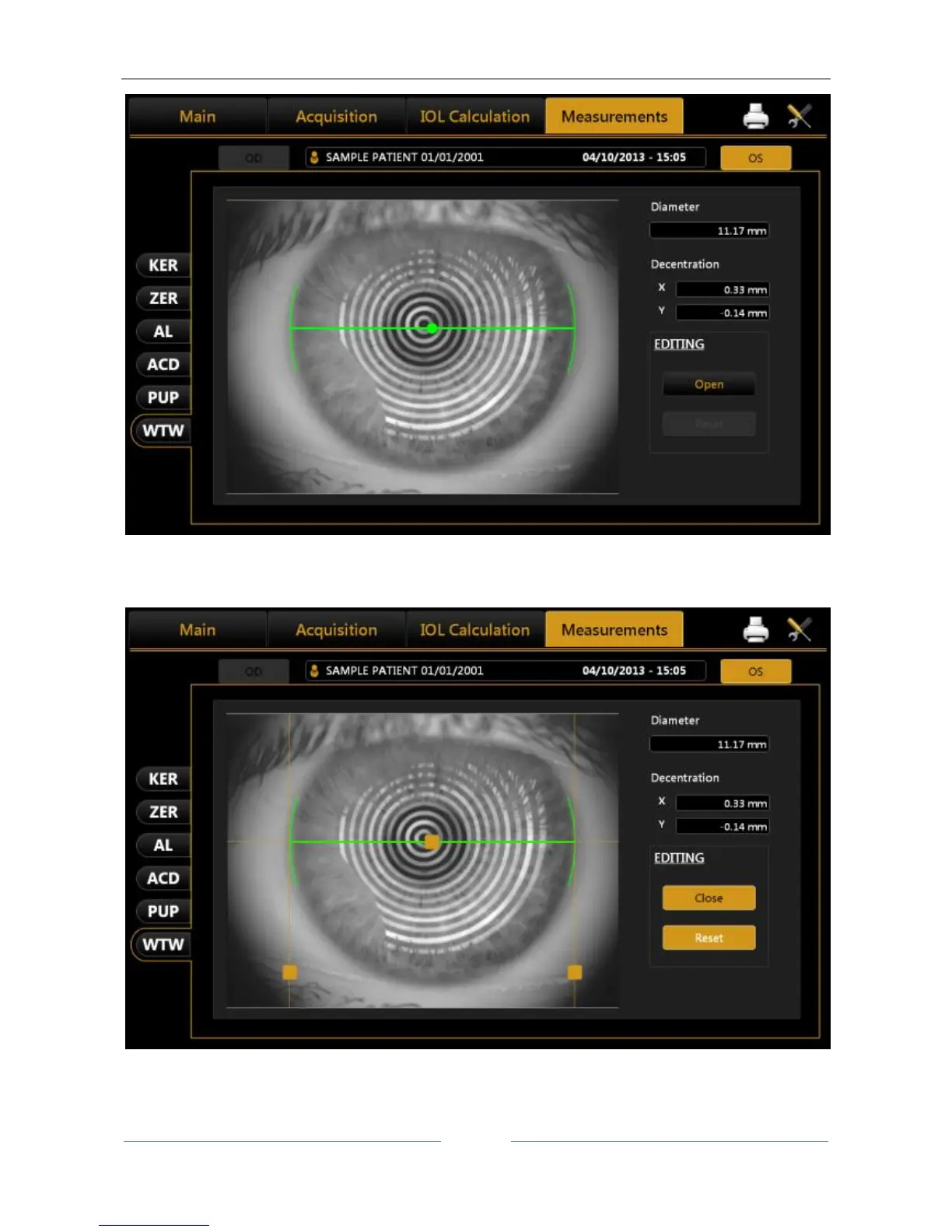 Clicking on the Open button in the Edit menu, the user can manually reposition positional indicators in