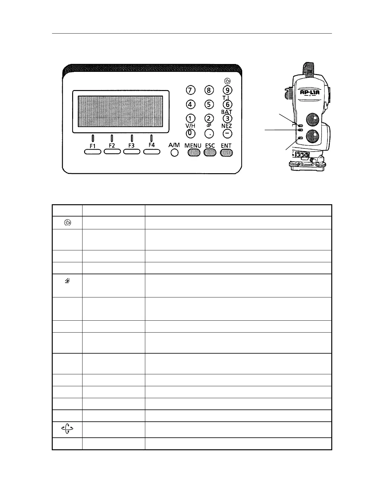 ESC Escape key Returning to the measurement mode or previous layer mode from the