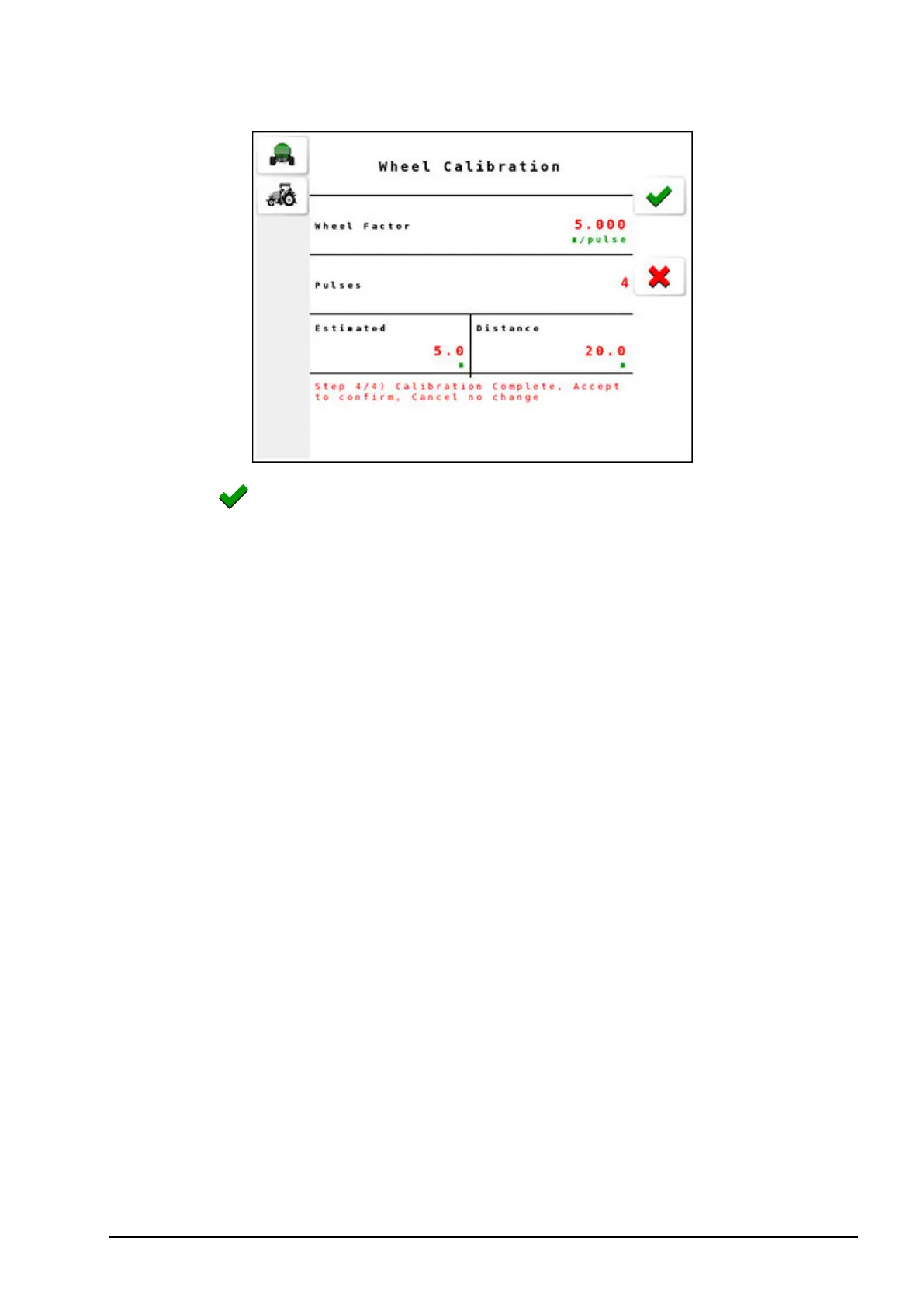 Select to confirm and return to the Wheel Calibration Settings