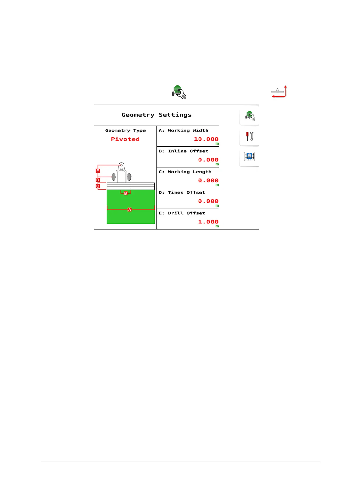 To set the implement geometry: